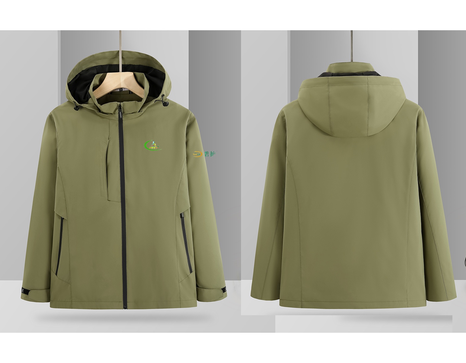 蓝之旺凭借多年在团体服装定制领域的经验,在此次合作中充分展现了其精湛工艺与灵活服务。此次定制的冲锋衣在左胸及左边袖子分别印制了碧护的品牌Logo,设计简洁大气且富有层次感,在户外场景中格外醒目。服装选用高机能面料,兼顾防风防水与透气性,确保团队在多种环境下的舒适与专业形象。